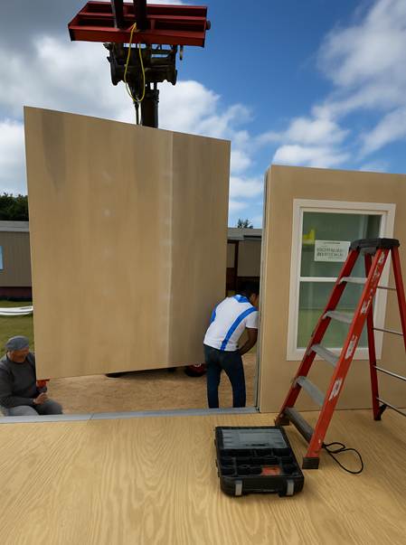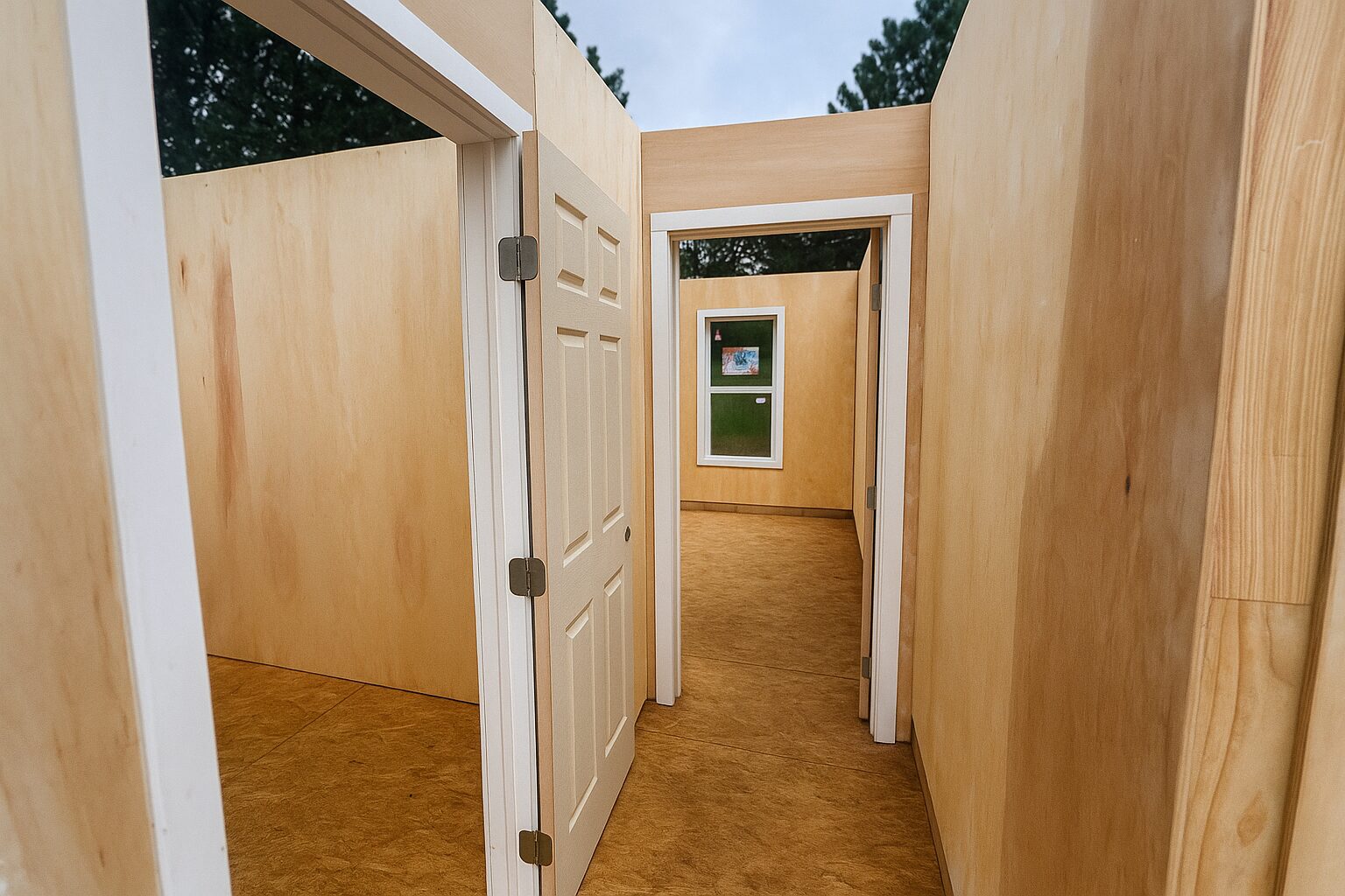 Factory-engineered interior wall panels include framing, drywall, and door assemblies, creating a finished surface that installs cleanly and with precision. Designed for consistent quality and rapid assembly, they integrate seamlessly with exterior and roof panels to complete the home’s structural system